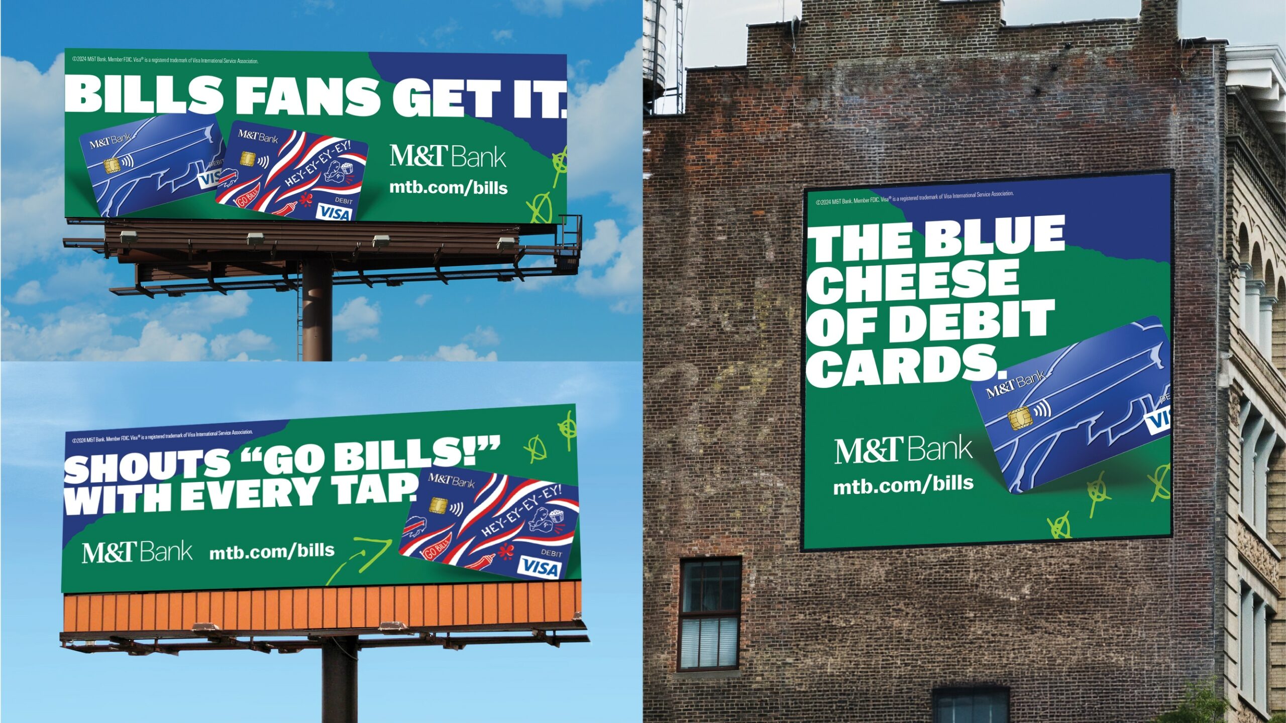 Billboards and digital ads were used to promote the bank’s exclusive Bills debit cards, with messaging and designs only fans would get.