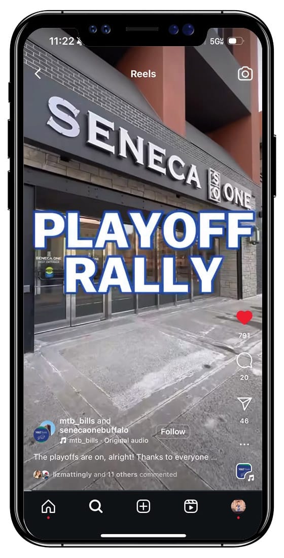 M&T hosted the biggest playoff rally in Buffalo inside the biggest building in Buffalo, Seneca One Tower. Our team showed up in big ways too, helping spread the news on social, hiring a local artist to design the traveling rally bus, prepping swag to excite fans, and collecting social content during the event.