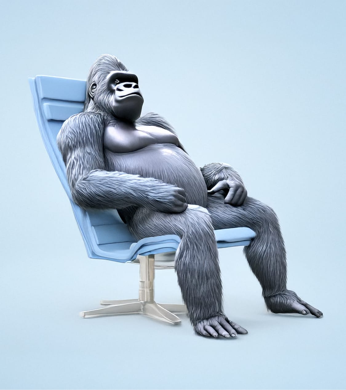 AI-generated from “Gorilla in chair” prompt: